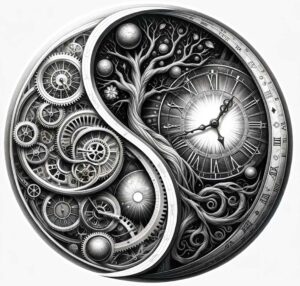 Die „Zeitfluss Körperkunst“ fokussiert sich auf das künstlerische Einfangen des fließenden Charakters der Zeit in Tattoo-Form. Diese Tattoos spiegeln die dynamische Natur des Lebens wider, indem sie Szenen oder Symbole darstellen, die Bewegung und Veränderung symbolisieren. Beliebt sind hierbei Darstellungen von fließendem Wasser, schwebenden Blättern oder sogar Sand, der durch eine Sanduhr rinnt.